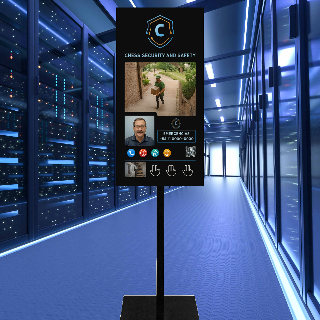 Nuestro centro de monitoreo, que cumple con la norma IRAM 4174, está equipado con tecnología avanzada. Los tótems, fabricados en metal de alta resistencia, presentan un diseño que se adapta a cualquier propiedad. Cada unidad incluye un sistema de respaldo energético, pantallas de alta definición, micrófonos y altavoces que permiten una comunicación continua con nuestro centro de operaciones.